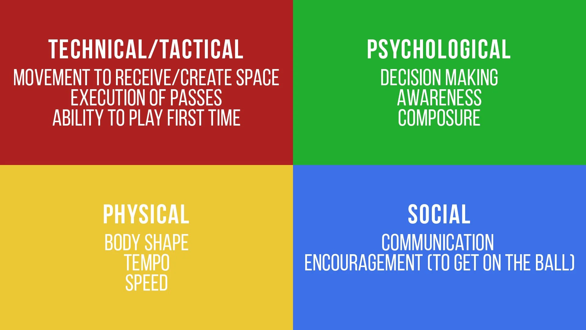Central triangle: One touch combinations and quick movement